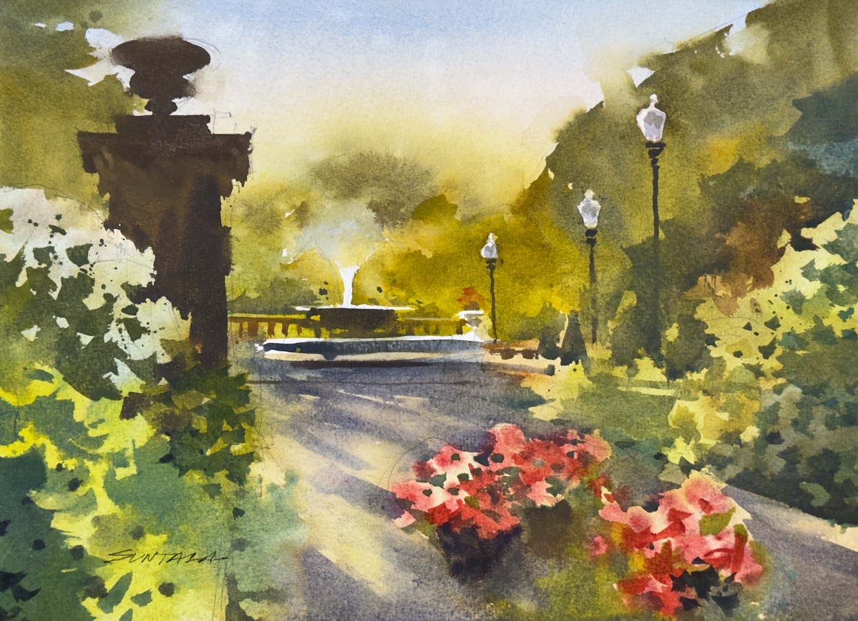 Low evening sun meant long cast shadows. The Italian Garden is a multi level wonder. Lots of great hardscaping. A very popular group photo spot as well.